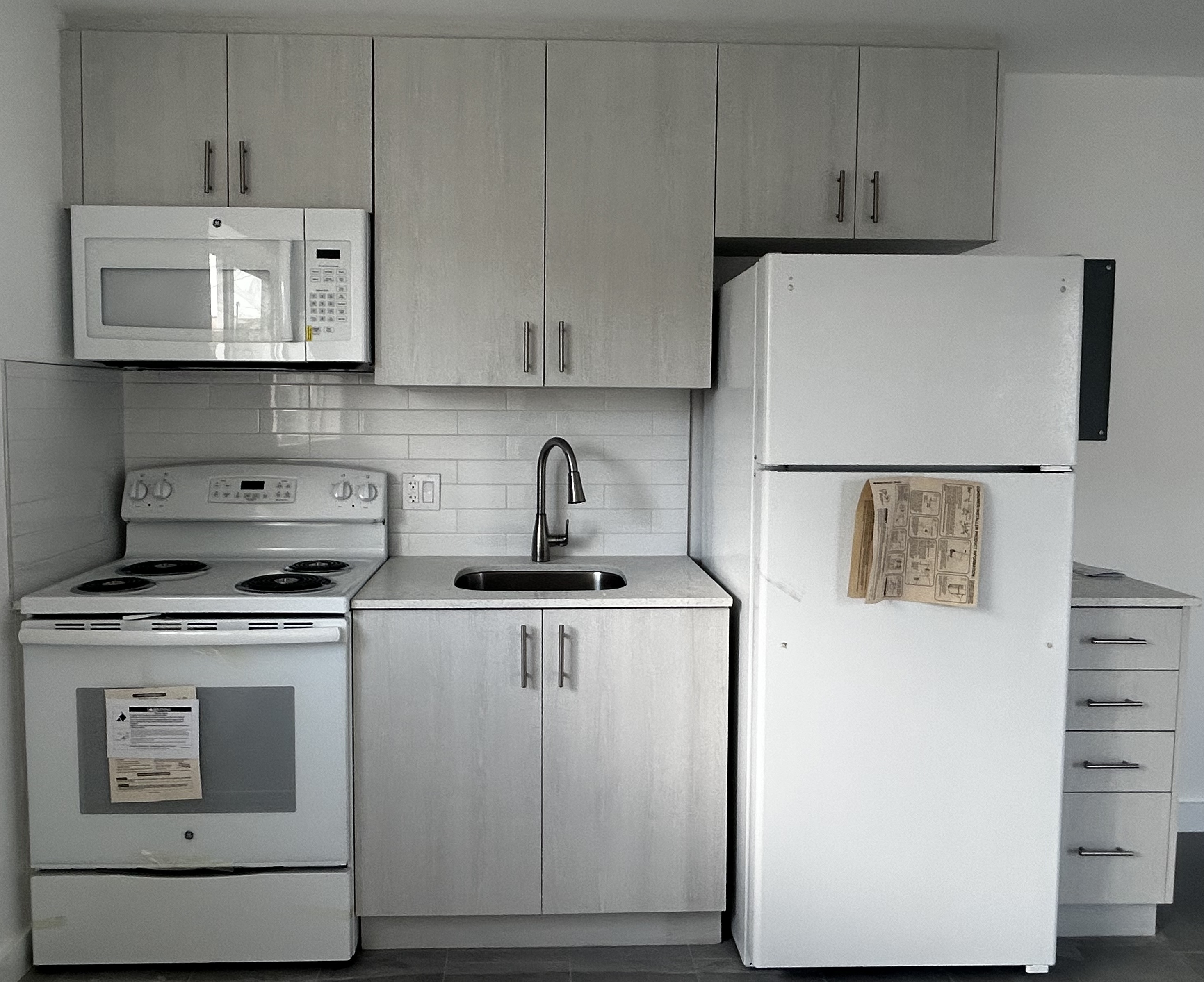 Renovations were tailored to meet residents’ needs. Kitchens now feature custom-built, floor-to-ceiling cabinets for added storage, deep sinks, and tiled backsplashes. Each bedroom includes built-out closets with mirrored doors. An on-site laundry room—previously abandoned—will be fully restored by the end of construction.